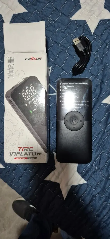 Package Includes: 1x Portable Electric Tire Inflator + Charging Cable + Nozzle Attachments